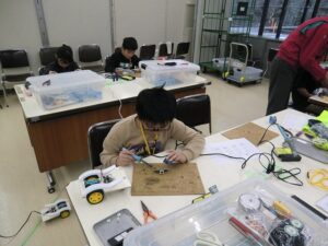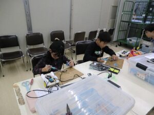 基礎コースの会員は、有線リモコンカーを実施しました。リレーという部品は、前回の