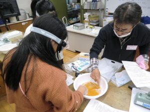 第18回目の活動を行いました。今日は化学実験コースのみの活動日で、染料の抽出を実施しました。