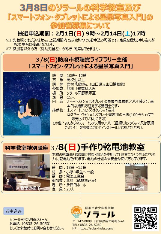 3月8日(日) スマートフォン・タブレットによる星景写真入門」